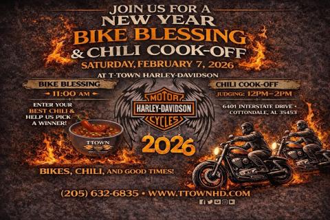 Bike Blessing And Chili cook off ride Saturday 2/7/26 @ T-Town Harley Davidson. Meet @HOD 9:30 AM KSU at 10:00 AM though Oak Mt. park turn